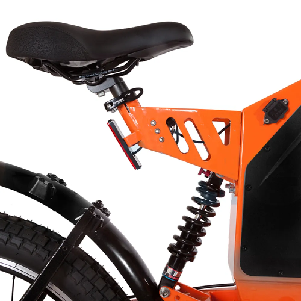 При мощность велогибрида 1000 Вт максимально выжимаемая скорость составляет 40 км/час, а пробег на одной подзарядке может доходить до 50 км. 24-дюймовые колеса с широкими покрышками в сочетании с передними и задними амортизаторами обеспечивают плавность езды по неровностям.