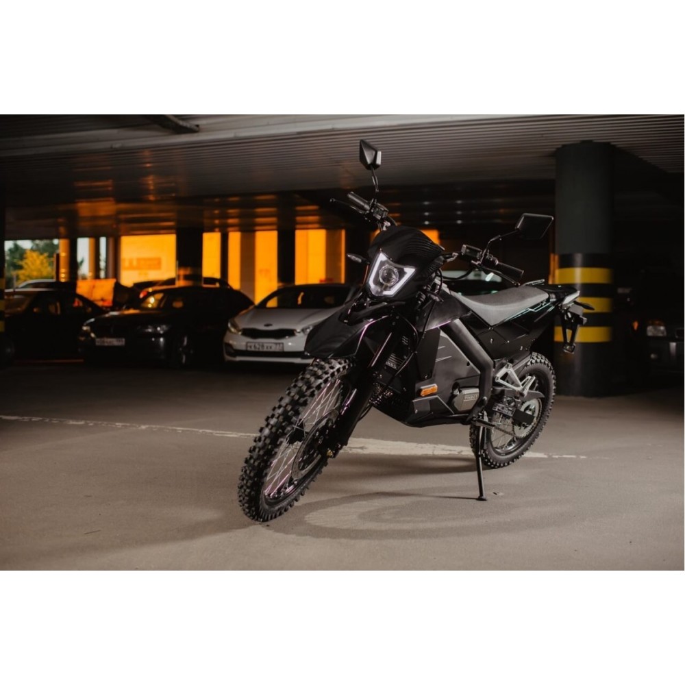Tinbot ES1 PRO – современный электрический мотоцикл класса “эндуро”. Яркая передняя оптика мотоцикла имеет эффект затухания – когда мотоцикл стоит на месте в режиме паркинга, фара тухнет, но не гаснет, что делает мотоцикл заметным, когда он заведённый стоит на месте. Имеется дальний и ближний свет, а в основании фары есть противотуманный фонарь. Электродвигатель установлен в центре мотоцикла, что делает его более управляемым.