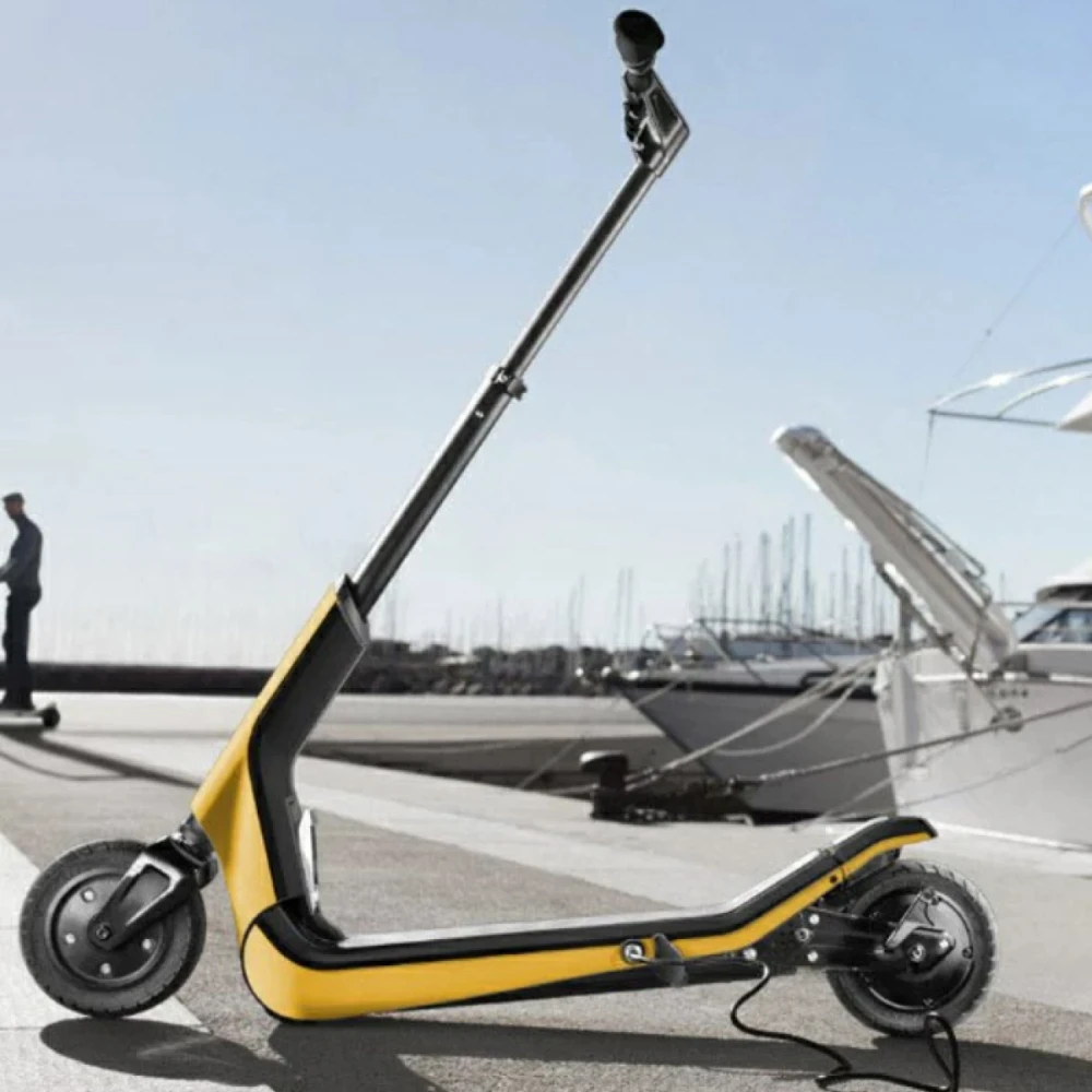 Общая масса составляет 12 кг, сравнительно небольшая для переноски и транспортировки другими видами транспорта. Складная конструкция стальной рулевой стойки делает размеры меньше в несколько раз. Нескользящая широкая платформа с пневматическими колесами диаметром 8 дюймов накатистая, отличная альтернатива городскому транспорту.