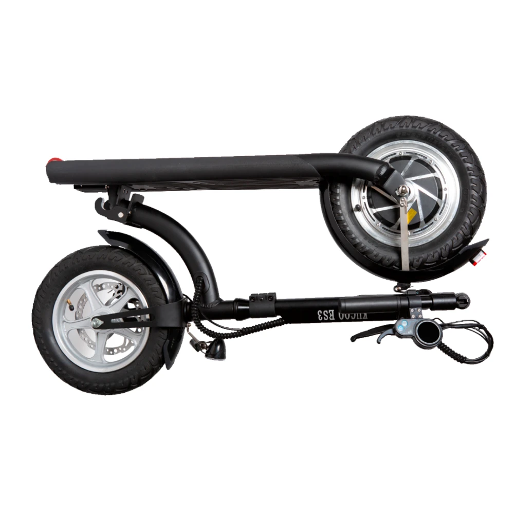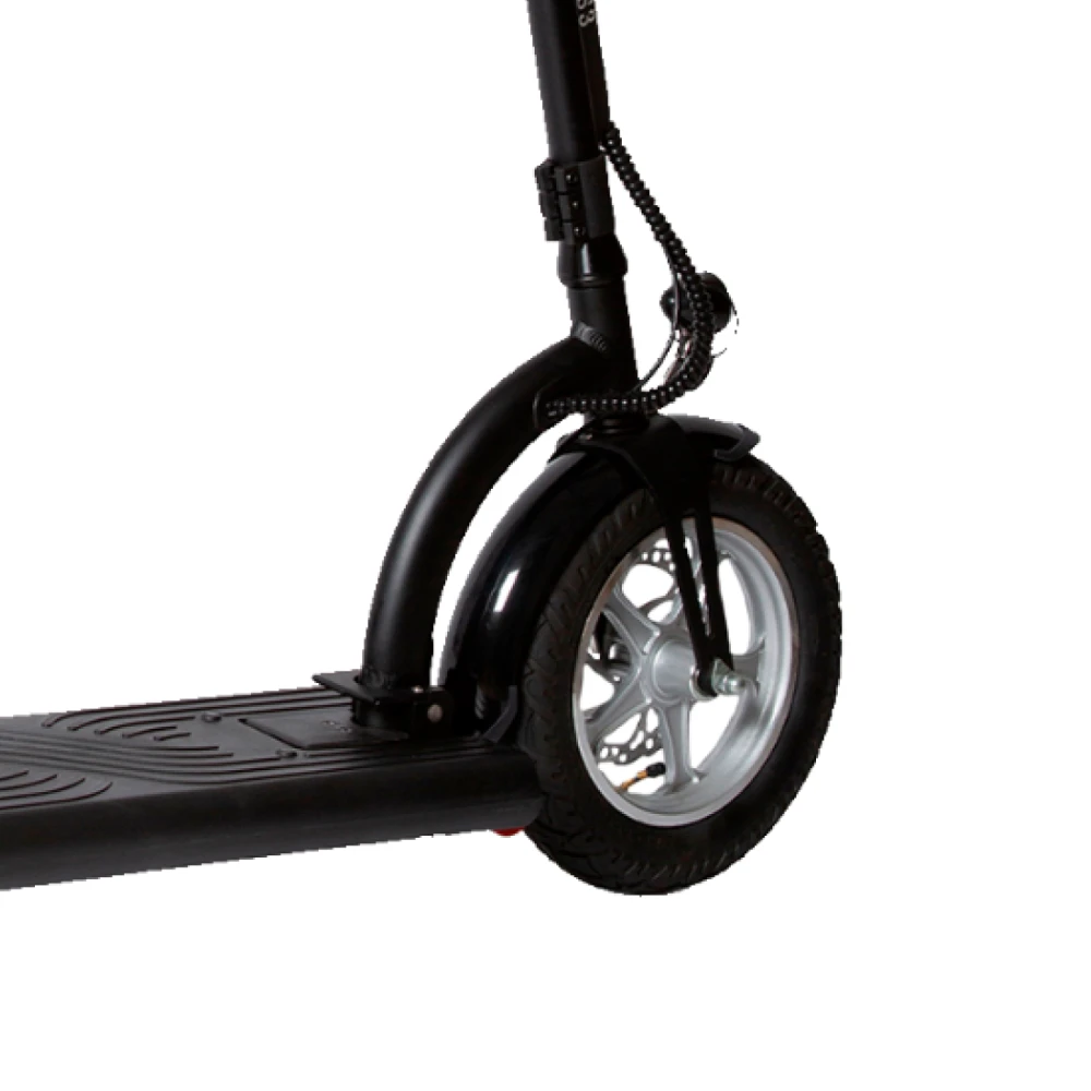 Мощность электросамоката составляет 500 Вт. Плавность хода обеспечена амортизаторами, роль которых выполняют накаченные колеса размером 12 дюймов. Модель предназначена для любителей активного отдыха, способна преодолевать расстояние на одной подзарядке до 35 км пути. Максимальная скорость техники – 35 км/час.