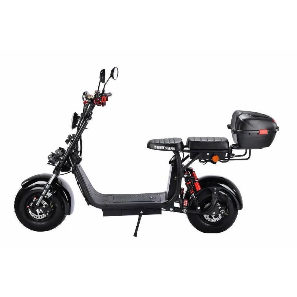Электроскутер CityCoco WHITE SIBERIA PRO+ 2000W - универсальное транспортное средство, которое позволит совершать прогулки и поездки по работе на большие расстояния, не обращая внимания на погодные условия.  Данная модель очень практична в применении, ее удобно мыть, и хранить. Для поездок по личным делам модель показала себя как надежное, стабильное, функциональное устройство, обеспечивающее комфортное передвижение по любым дорогам. Большие колеса гарантируют беспроблемное передвижение по ямкам и прочим неровностям дорожного покрытия. Так же у данного аппарата вполне приемлемая цена. Дополнительно ничего нет надо покупать.