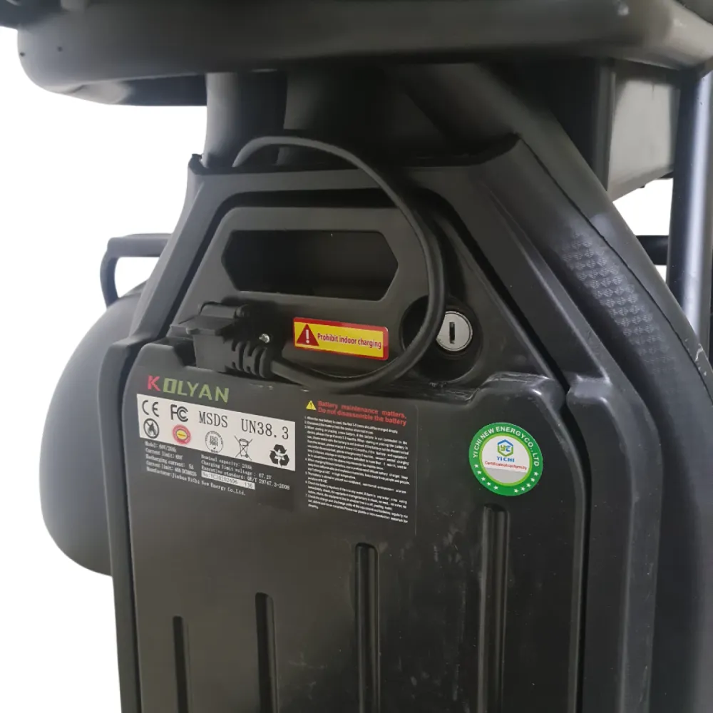 Литий-ионная батарея 60V 20Ah гарантирует запас хода до 45 км. Зарядка занимает 8 часов, а быстросъемный блок позволяет заряжать аккумулятор отдельно — идеально для тех, кто живет в многоквартирных домах.