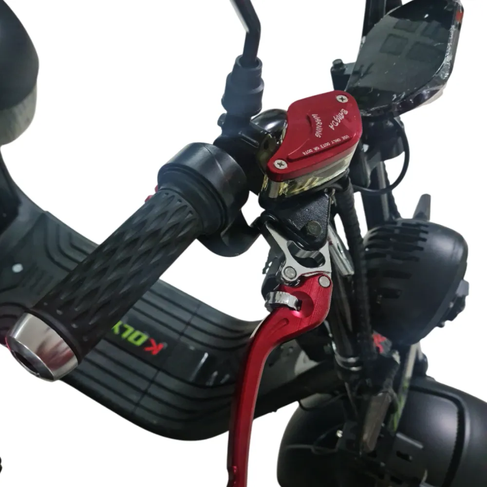 Гидравлические тормоза на обоих осях обеспечивают мгновенную остановку даже на высокой скорости. Прочная стальная рама выдерживает нагрузку до 250 кг, делая скутер универсальным для поездок вдвоем или перевозки груза.