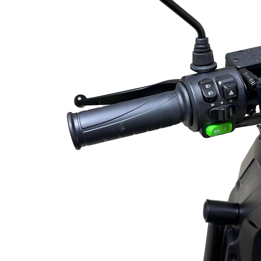 Мощность двигателя 1500 Вт обеспечивает разгон до 60–70 км/ч, справляясь с подъемами до 20° даже при полной нагрузке (150–160 кг), но на неровностях или с пассажиром запас хода падает до 50–70 км. Двухподвесная система (передняя вилка + задние амортизаторы) гасит вибрации на асфальте и гравии; дисковые гидравлические тормоза останавливают за 3–5 м со 50 км/ч; Li-ion аккумулятор 60V 50 Ач с быстрой зарядкой за 8 ч дает реальный пробег 70–100 км в эко-режиме, 50 км в спорте. Три режима езды + задний ход оптимизируют энергоэффективность (эко экономит 20–30% заряда), мотоциклетная ручка газа упрощает контроль; подвеска и задний привод повышают эффективность на 10–15% по сравнению с передним.