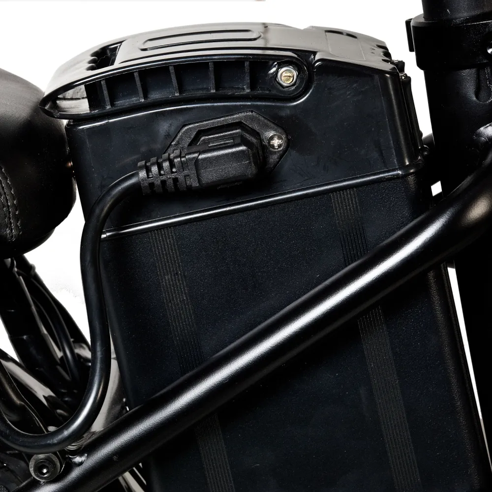 В новой модели производитель обновил комплектующие, сделав модель лучшей по скоростным параметрам. Электровелосипед при мощности мотор-колеса способен развить скорость до 40 км/час и проехать на одной подзарядке до 40 км. Емкая фирменная АКБ размещена в нижней части, сбоку от седла, не мешает райдеру, легко снимается для подзарядки.