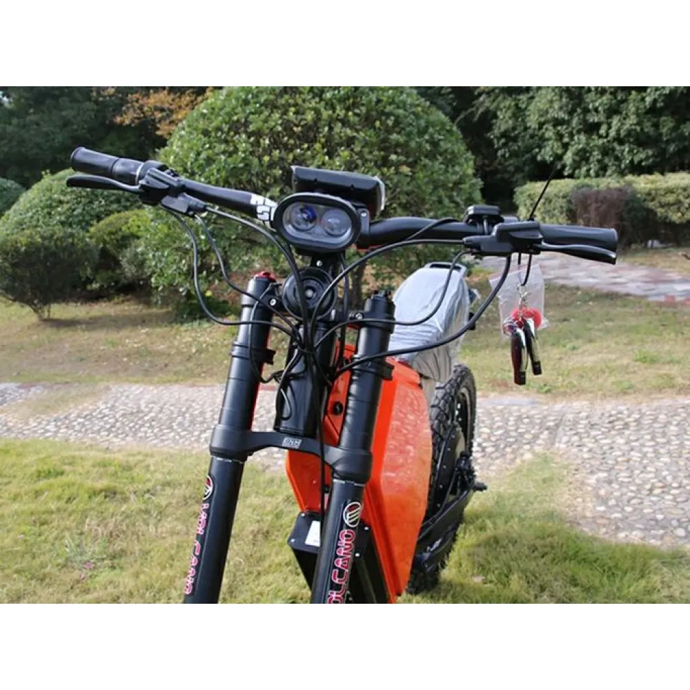Электровелосипед Suringmax EM728000v2 черно-оранжевый – горный байк с максимальной грузоподъемностью до 200 кг рассчитан на езду по проблематичной, пересеченной местности и бездорожью. Оригинальный дизайн резко выделяет технику на фоне аналогичных моделей. Приобрести электровелосипед по демократичной стоимости, насладиться техническими характеристиками, маневренностью и экстремальным скоростным режимом предлагает наш интернет-магазин.