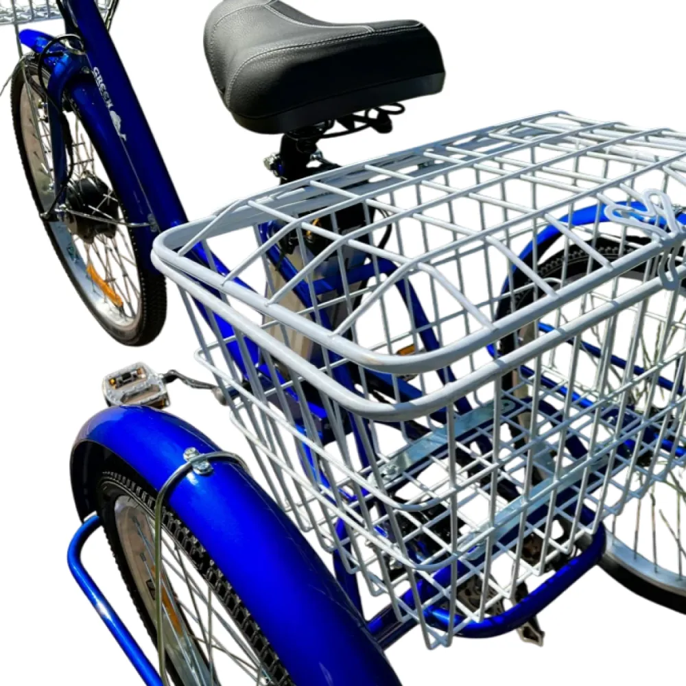 Для 16+, рост 150–185 см, новичков, пожилых, курьеров, людей с ограниченными возможностями (стабильность без баланса). Цели: работа/прогулки/доставка с грузом 50 кг в корзинах. Корзины удобны для дачи/рынка.