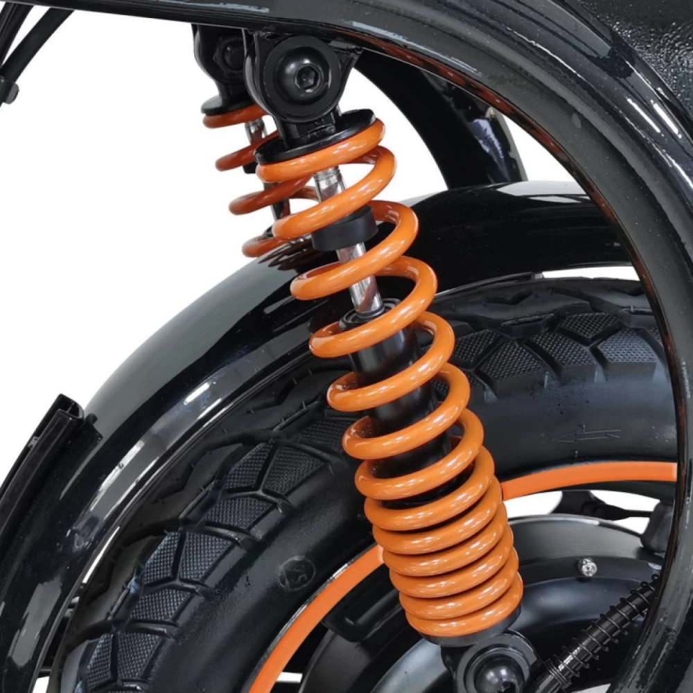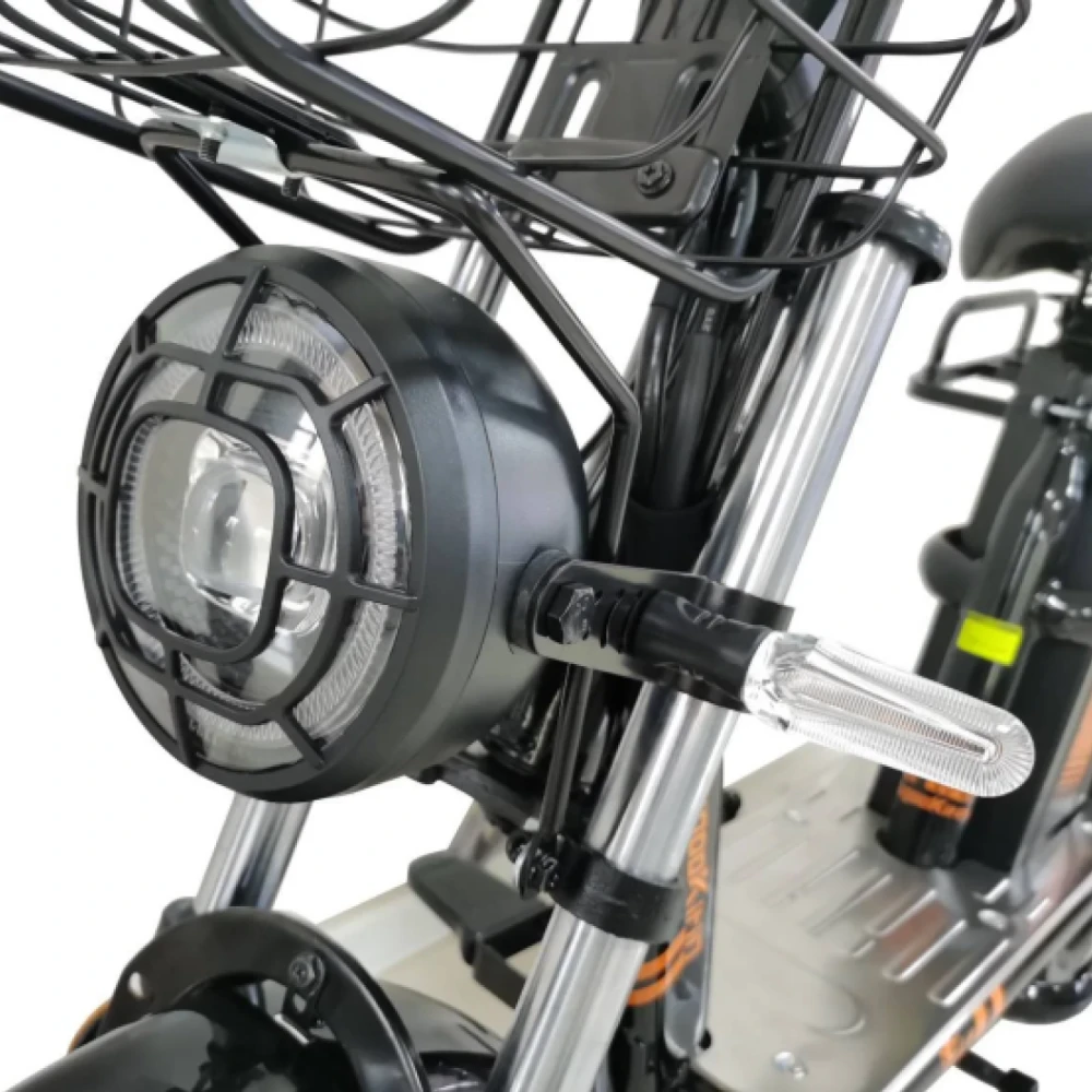 LED-фара, стоп-сигнал и габаритные огни обеспечивают отличную видимость в любое время суток. Эффектный чёрно-оранжевый дизайн подчёркивает стиль и функциональность модели.
